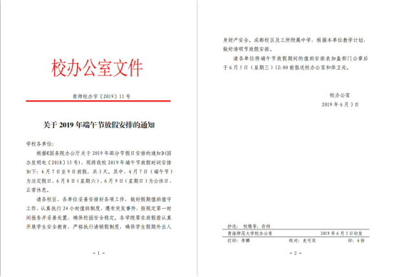 关于2019年端午节放假安排的通知